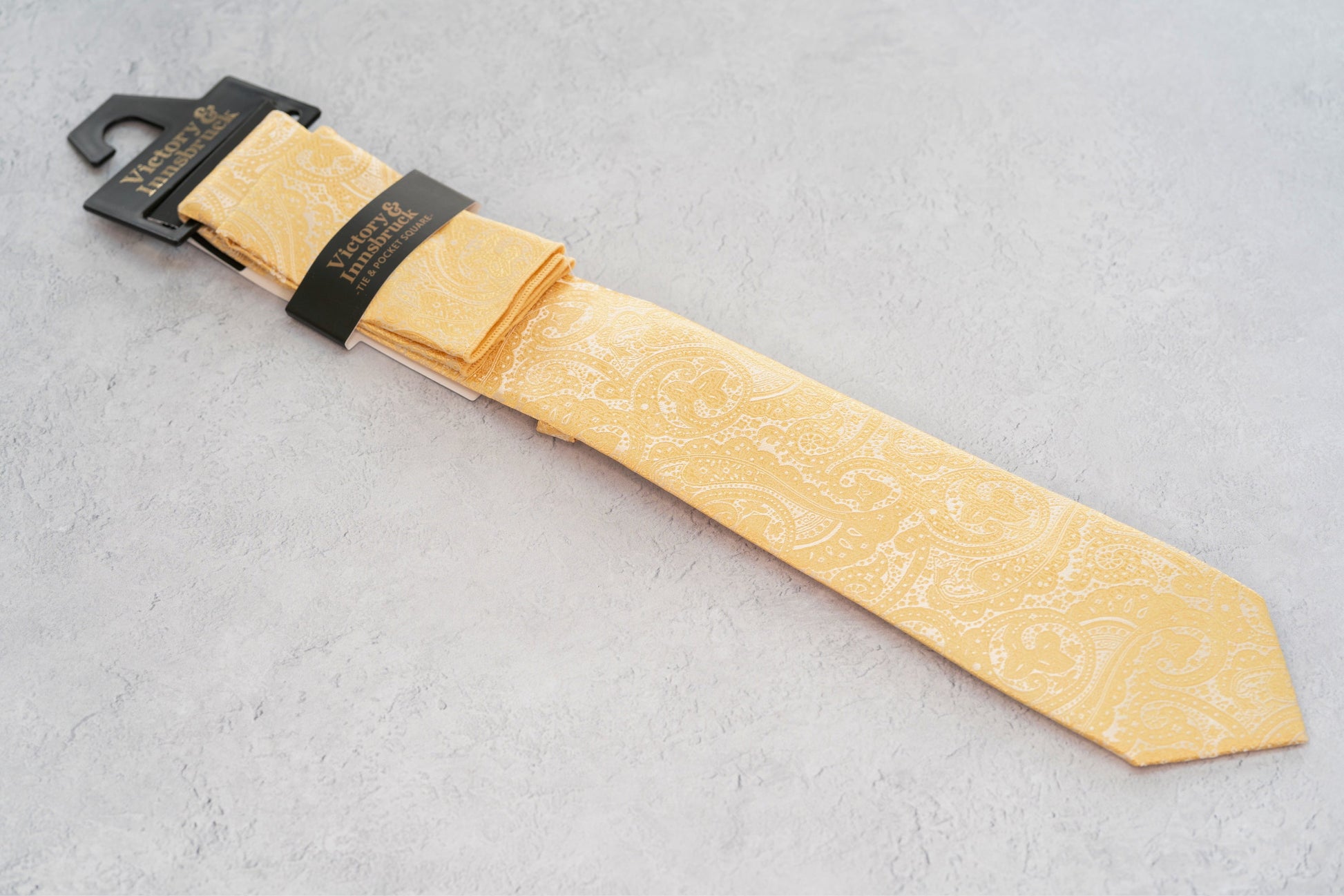 BOY'S CHAMPAGNE GOLD PAISLEY TIE & POCKET SQUARE