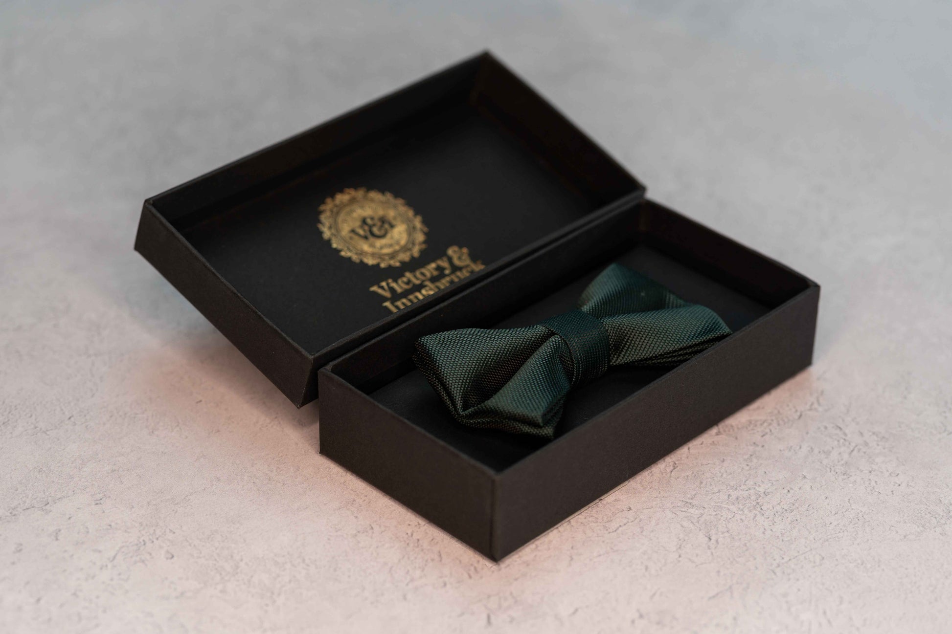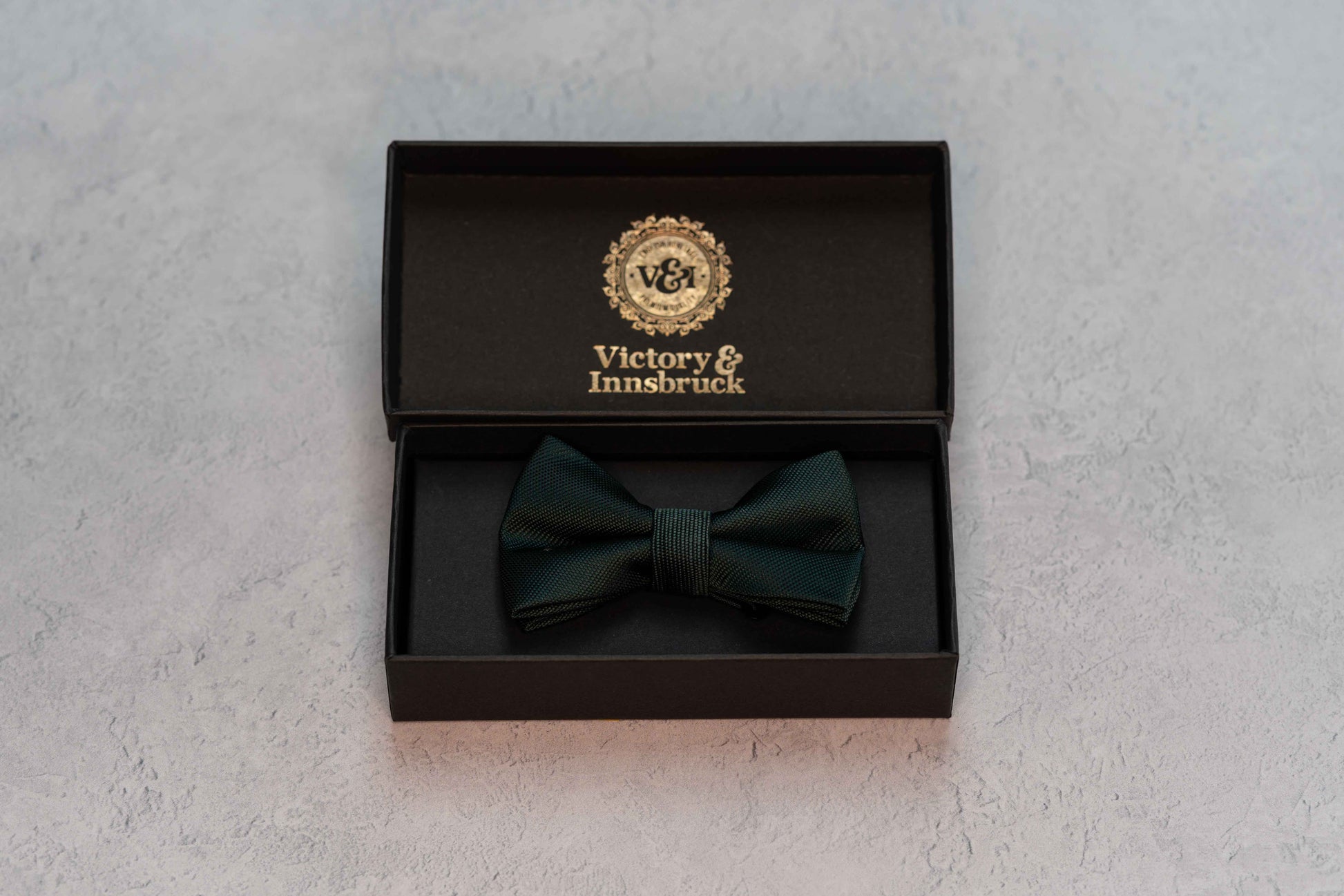 A textured finish Victory & Innsbruck bow tie in a dark bottle green colour. Ideal for any special occasion. Clip on fastening for ease and the guaranteed perfect finish.