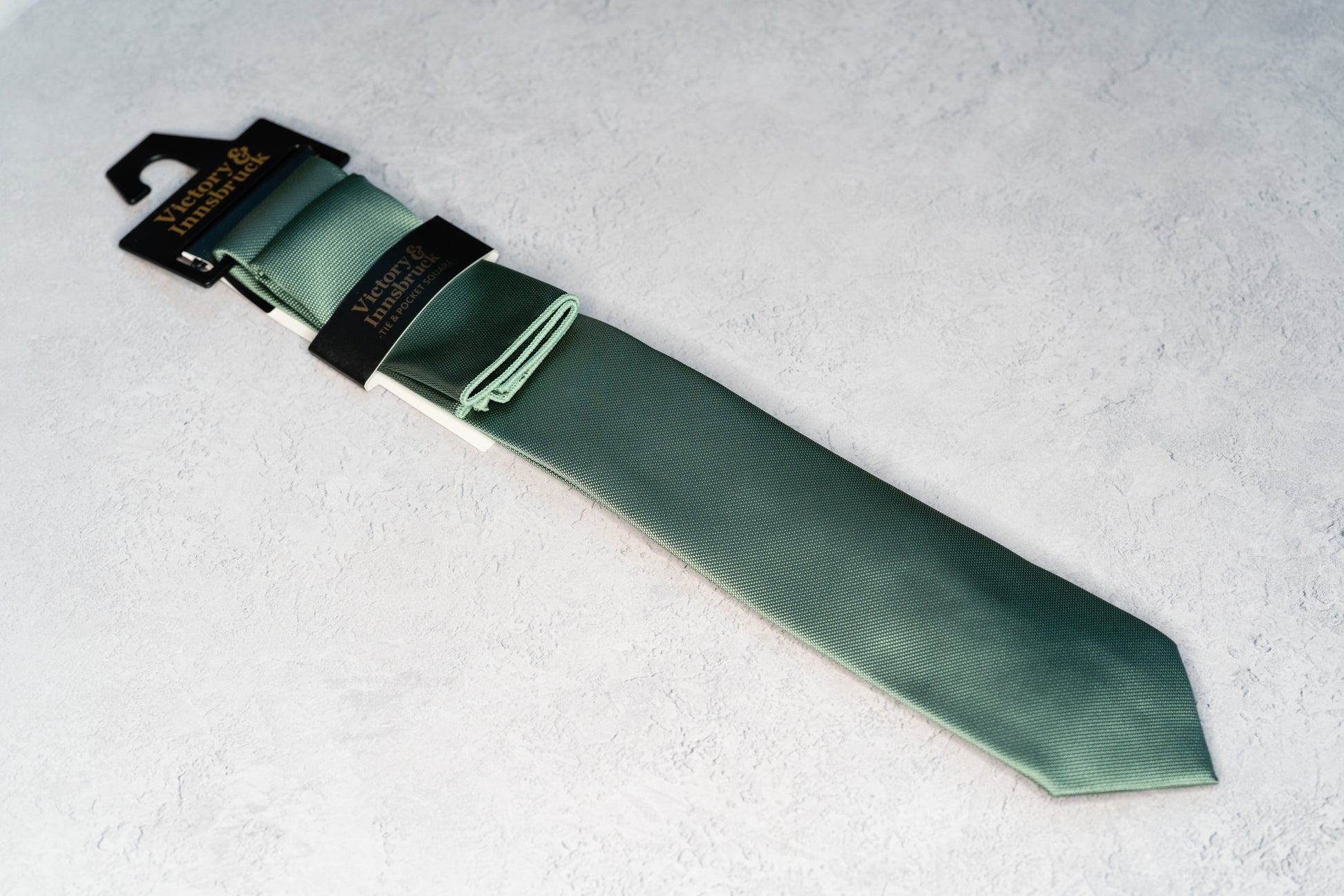 BOY'S DARK SAGE GREEN TEXTURED TIE & POCKET SQUARE