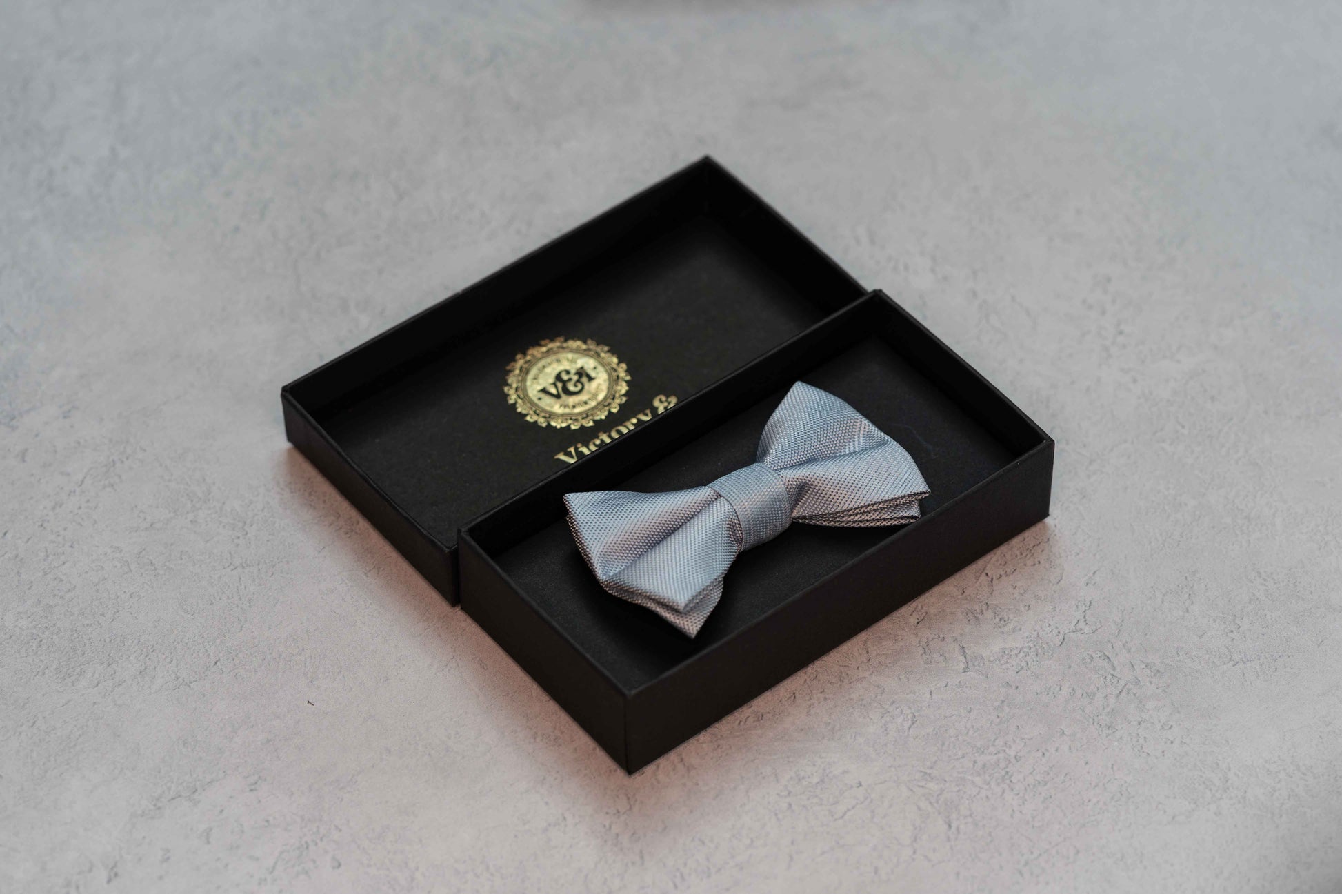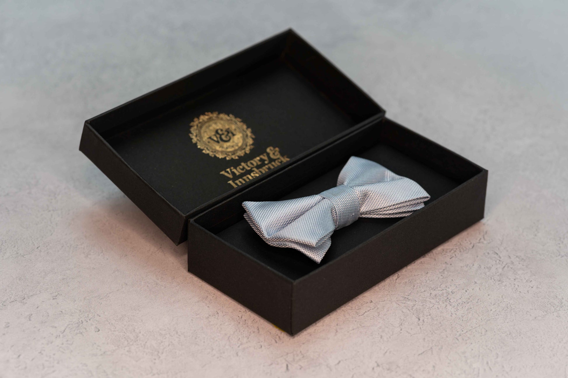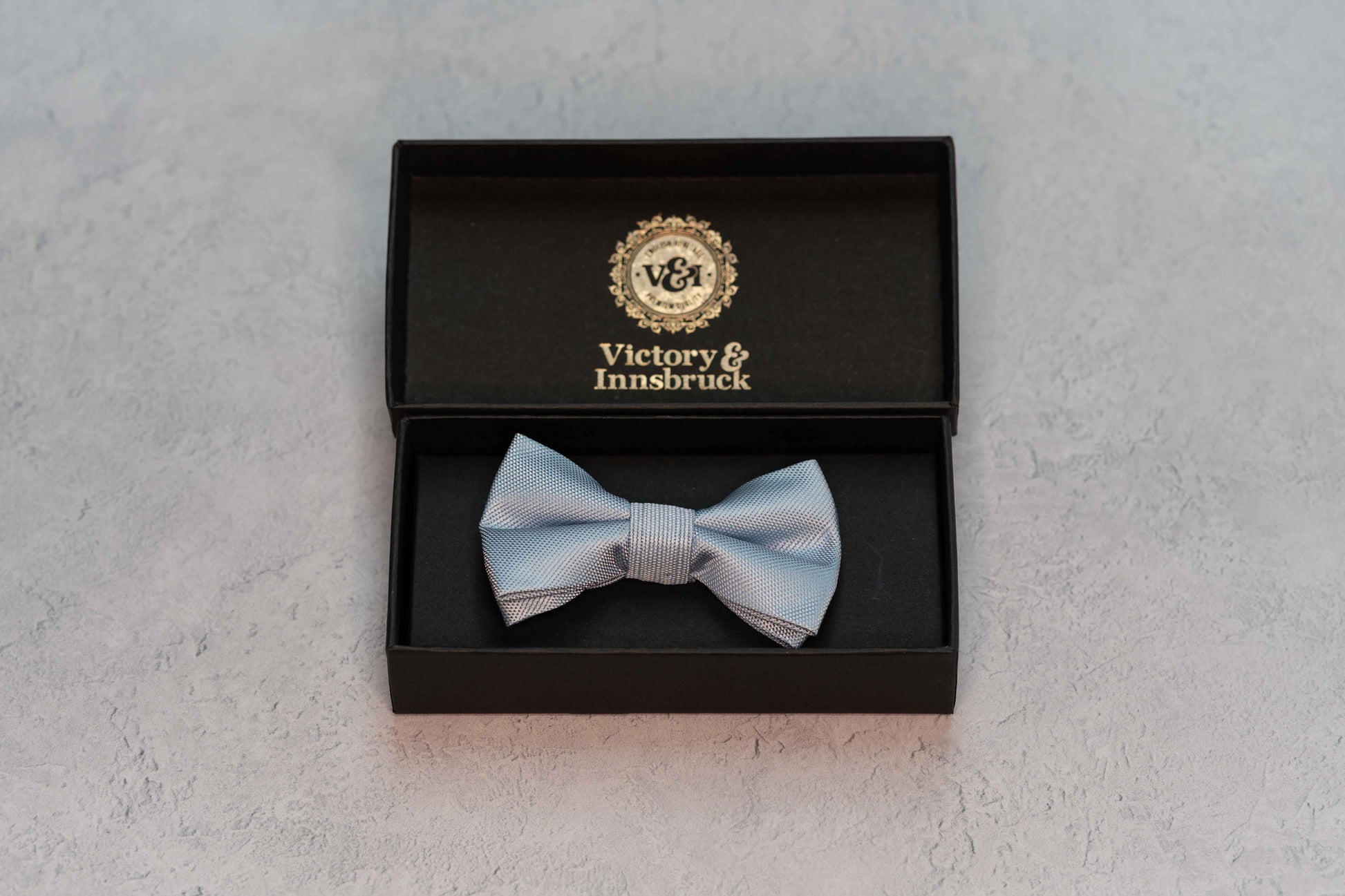 A textured finish Victory & Innsbruck bow tie in a dusty blue colour. Ideal for any special occasion. Clip on fastening for ease and the guaranteed perfect finish.