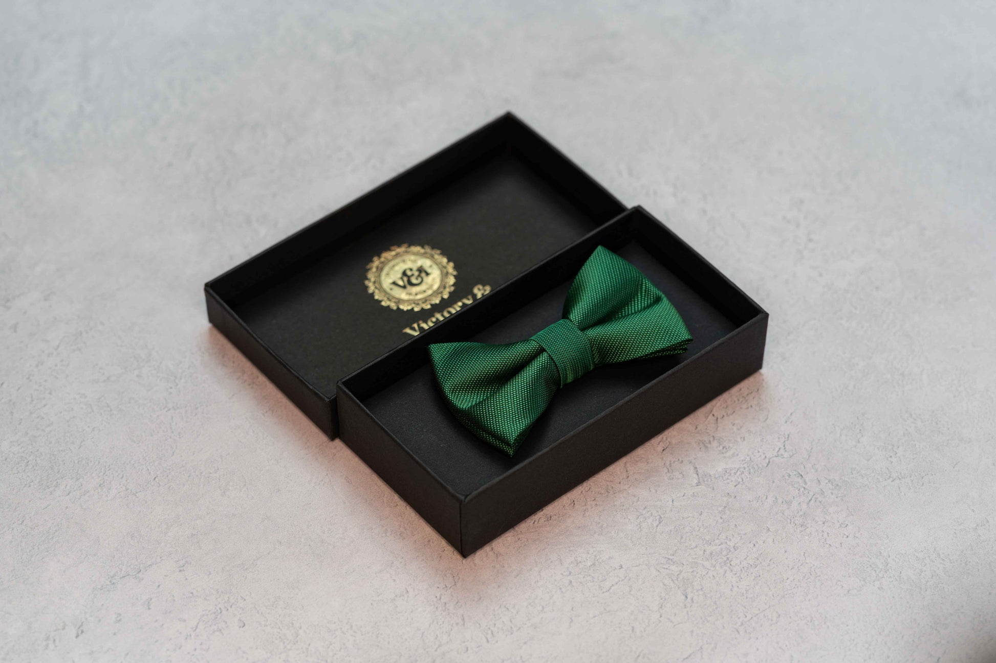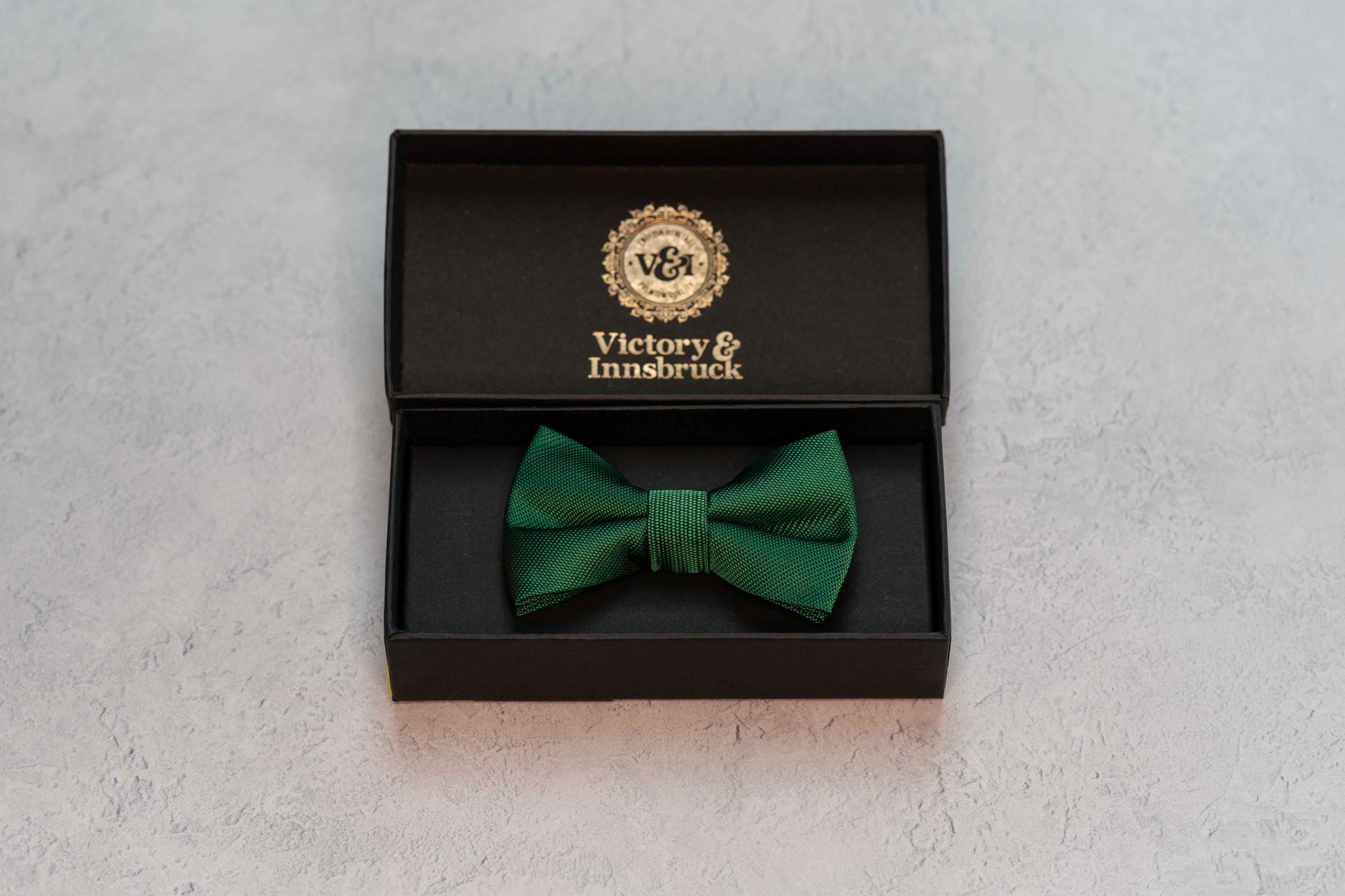 A textured finish Victory & Innsbruck bow tie in a forest green colour. Ideal for any special occasion. Clip on fastening for ease and the guaranteed perfect finish.