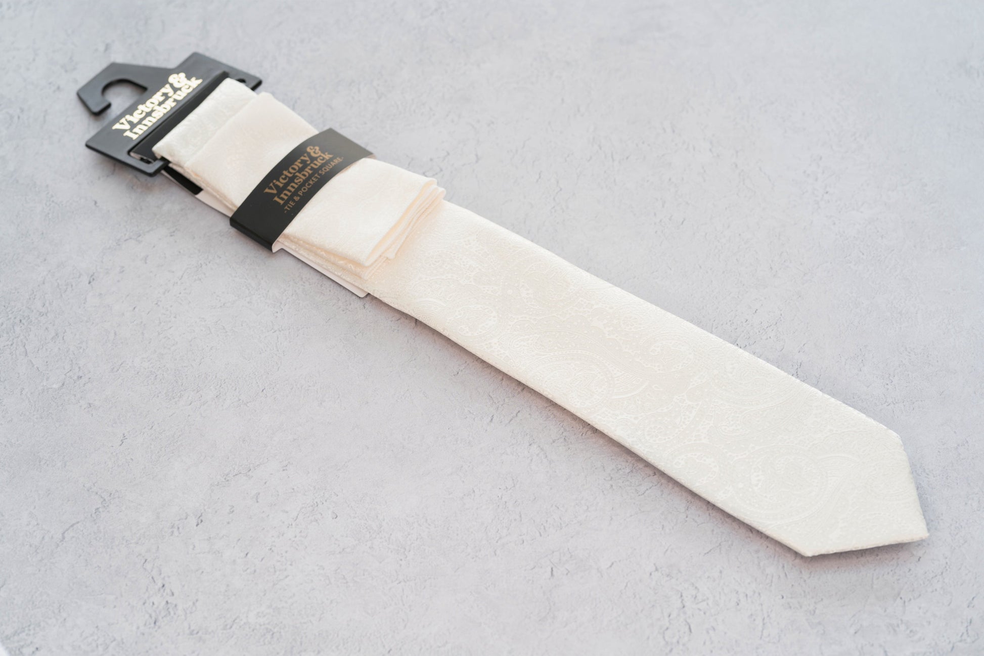 BOY'S IVORY PAISLEY TIE & POCKET SQUARE