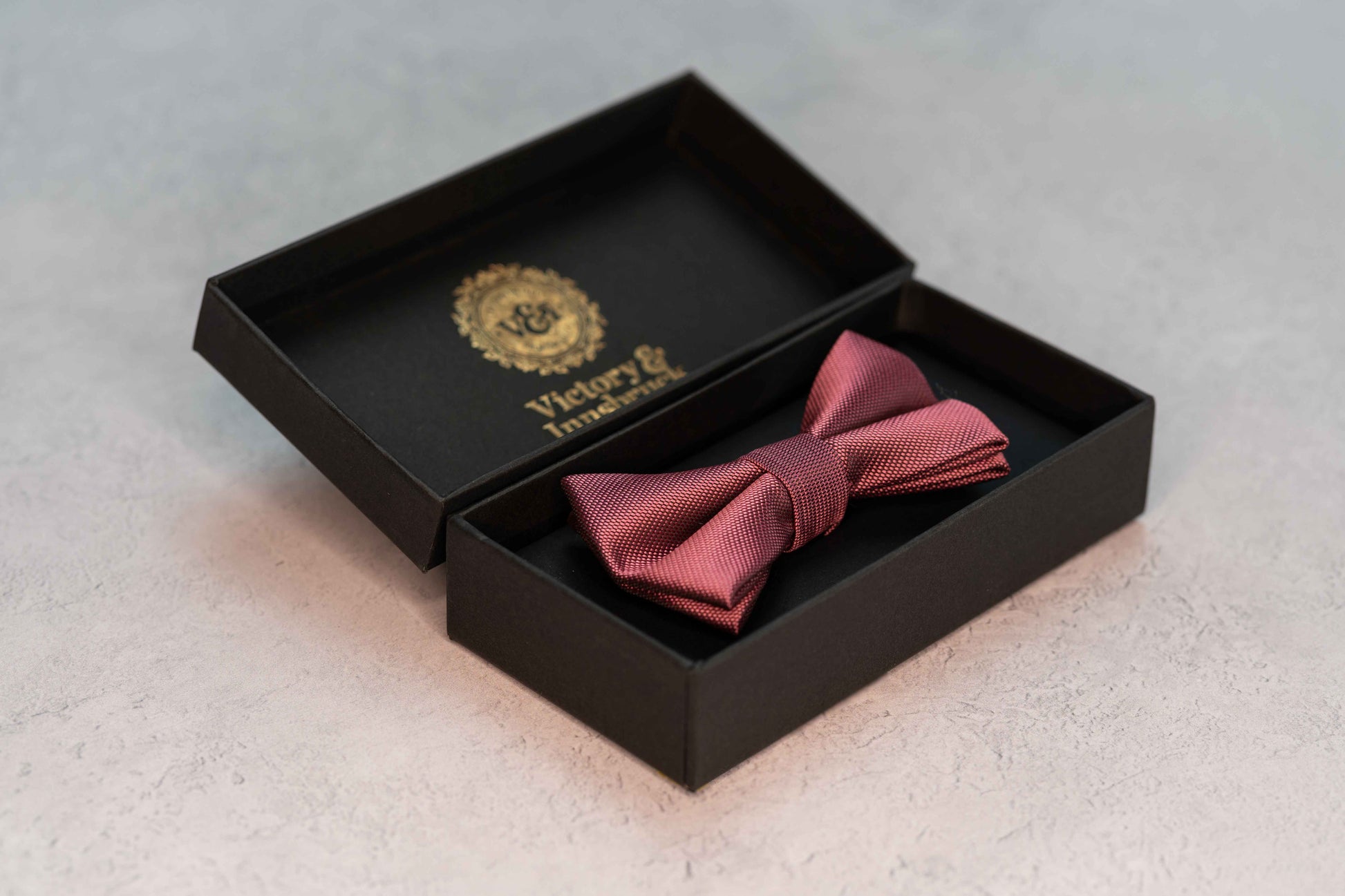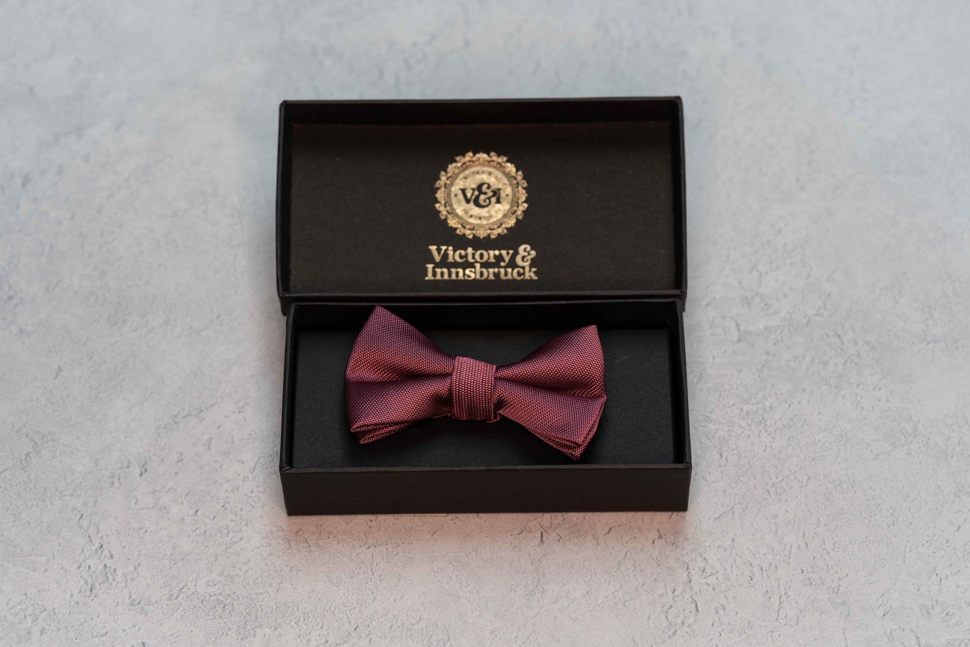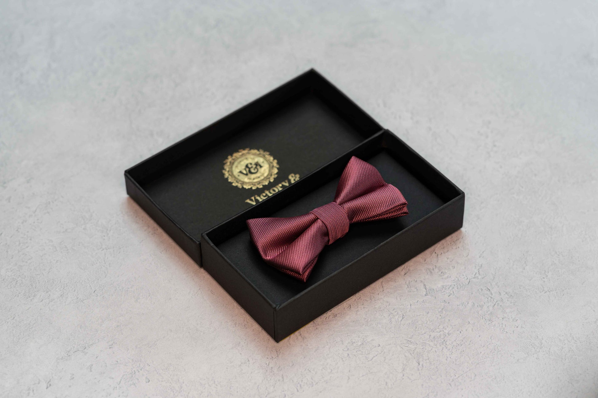 A textured finish Victory & Innsbruck bow tie in a mauve colour. Ideal for any special occasion. Clip on fastening for ease and the guaranteed perfect finish.