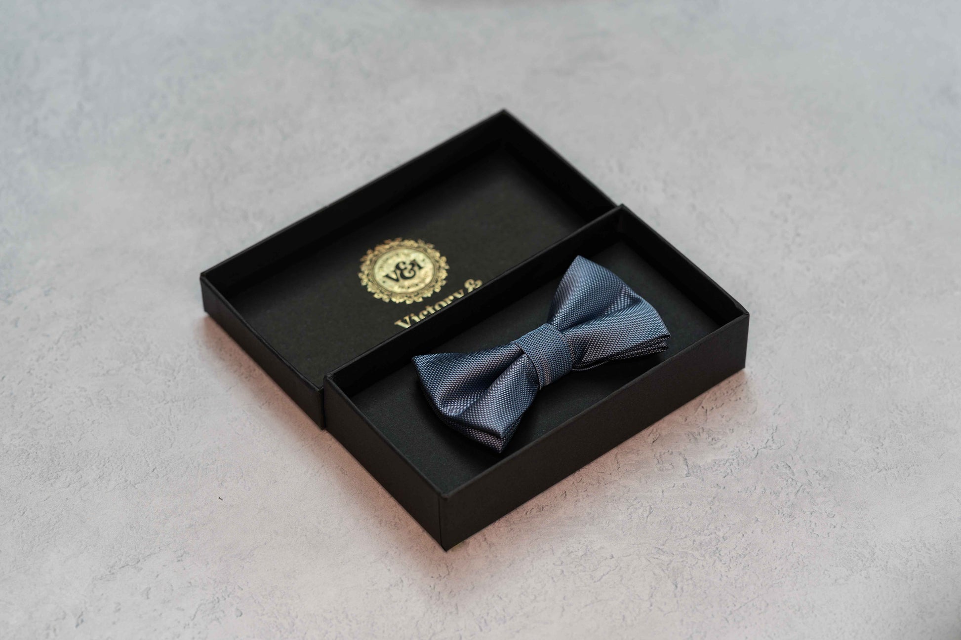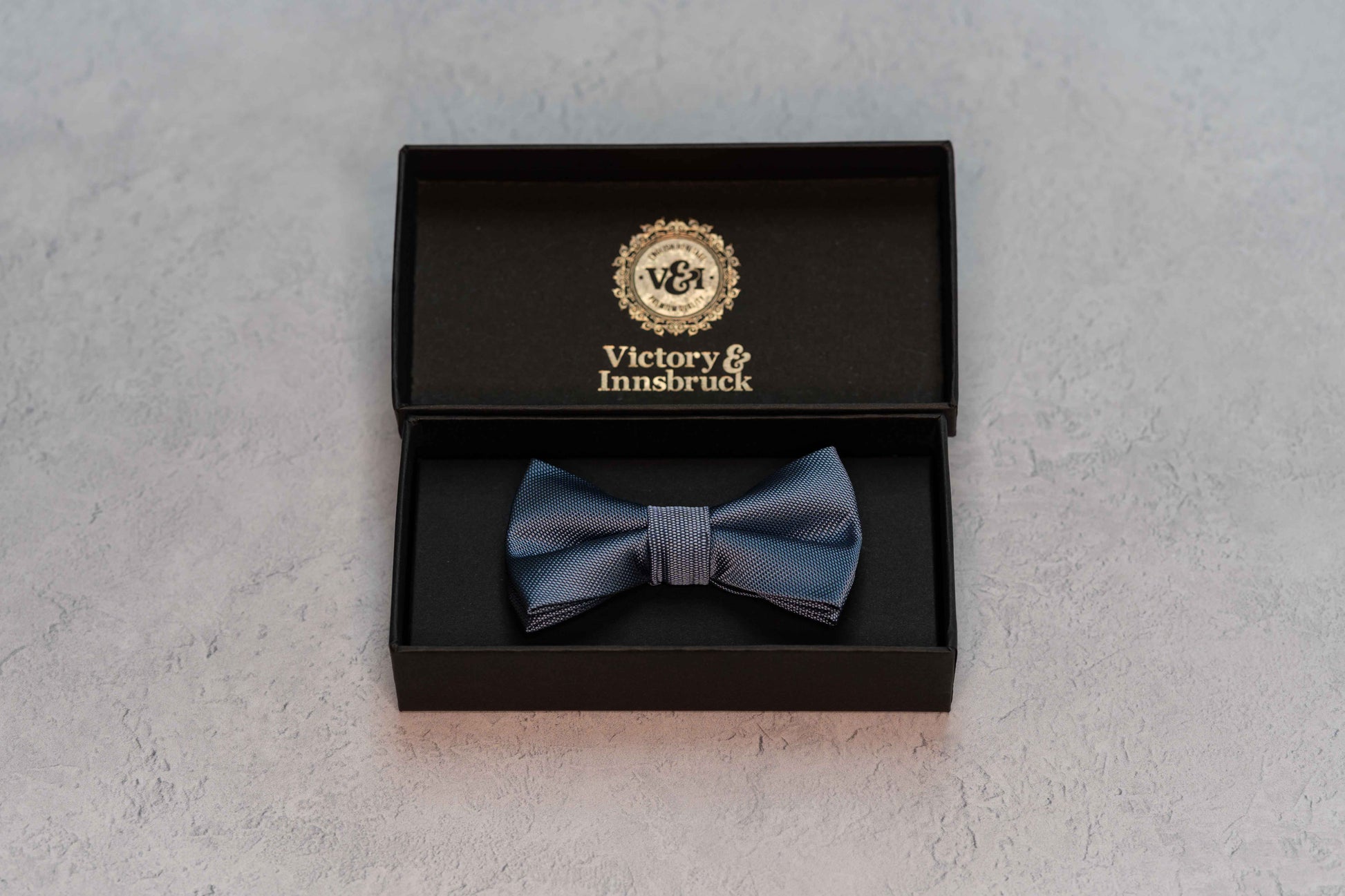 A textured finish Victory & Innsbruck bow tie in a slate blue colour. Ideal for any special occasion. Clip on fastening for ease and the guaranteed perfect finish.