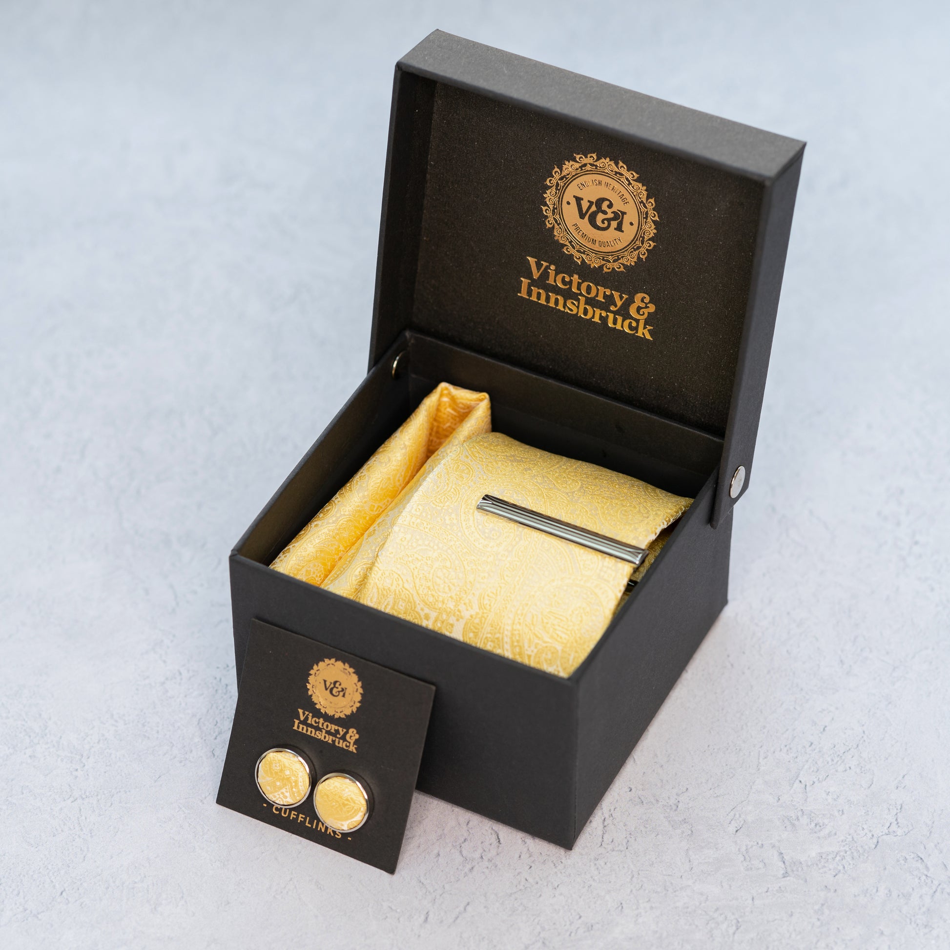 BUTTERCUP YELLOW PAISLEY TIE SET