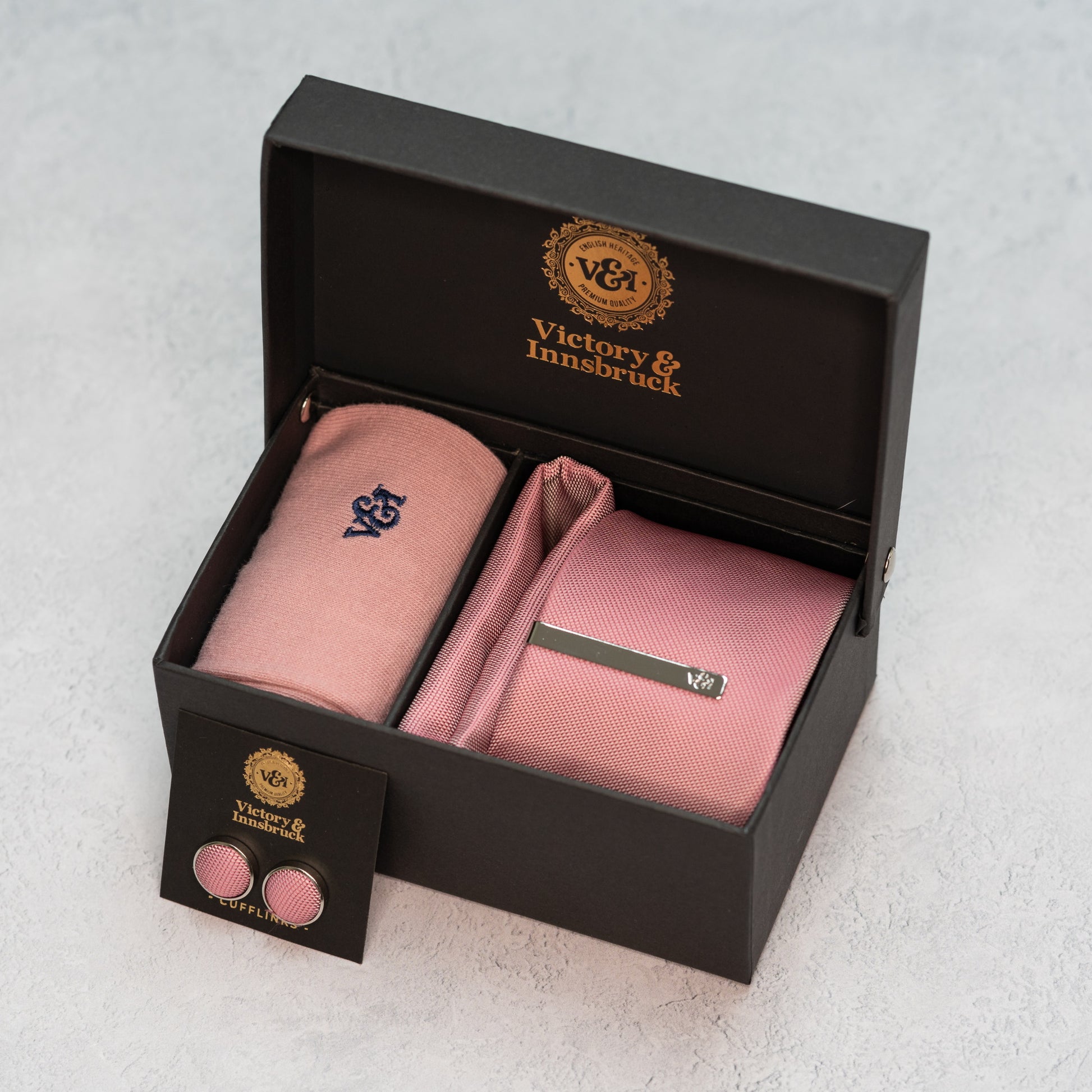 - Box Set (No Socks) - A smaller version of our full box set without the Socks. Includes Tie, Tie Bar, Pocket Square & Cufflinks.