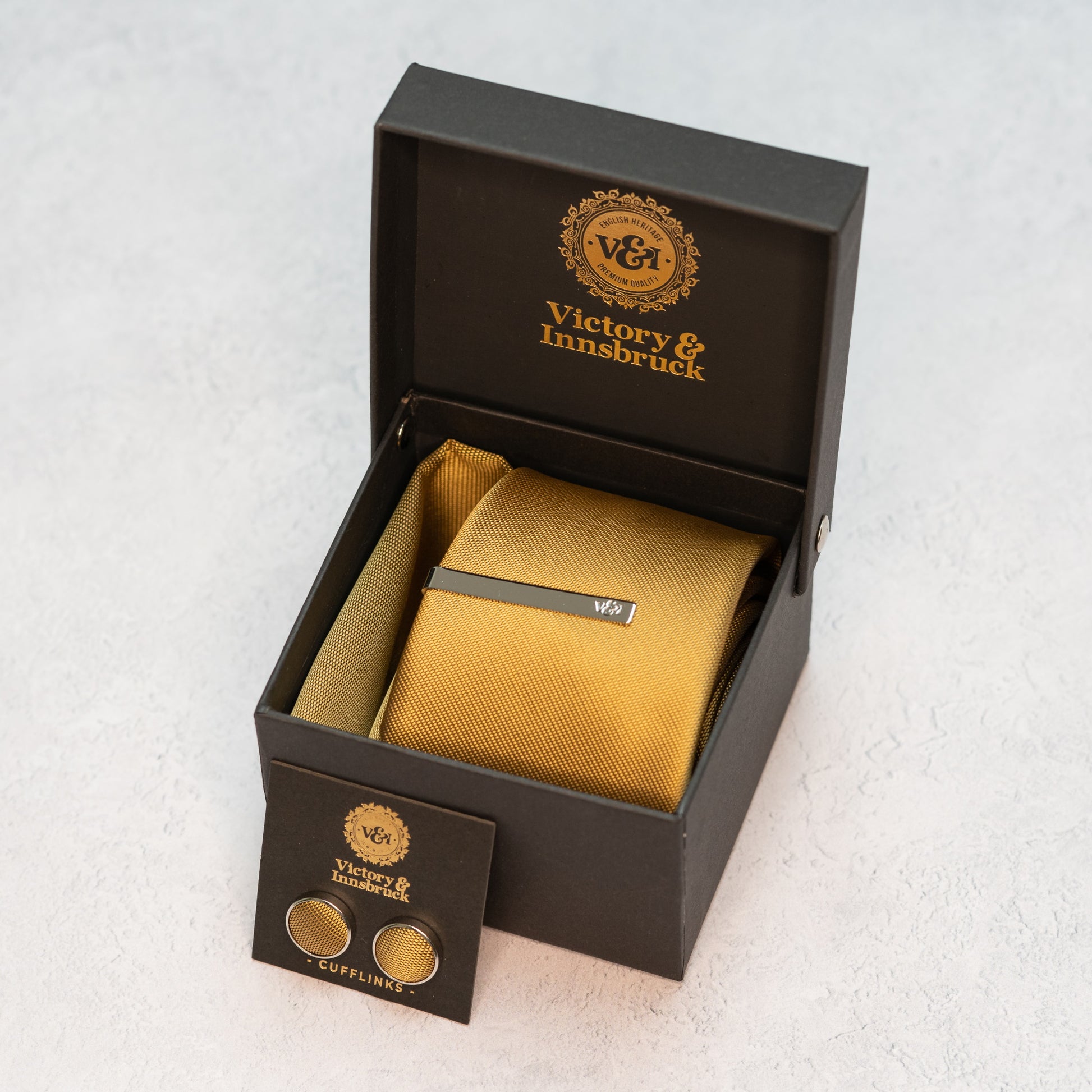- Full Box Set - Tie, Tie Bar, Pocket Square, Cufflinks and Socks in our signature V&I gift box.